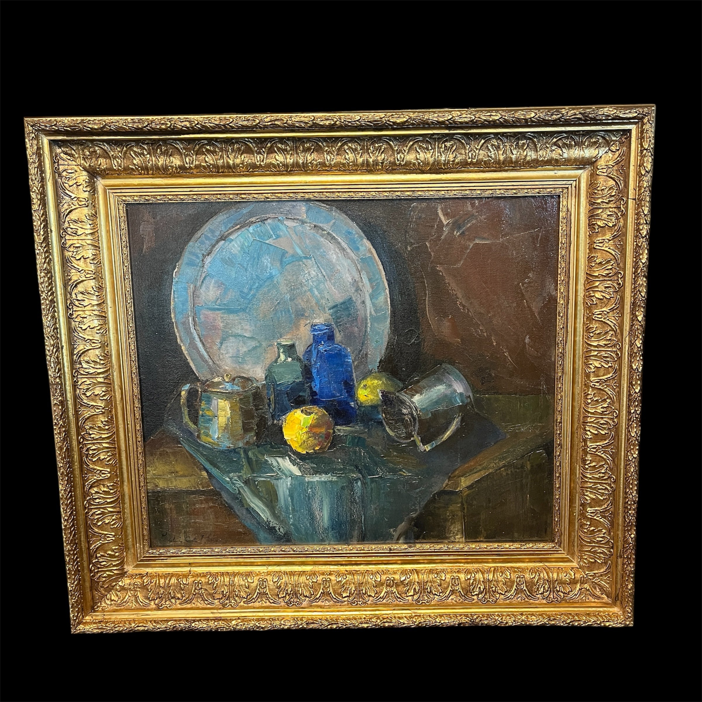 Firma Ilegible - Óleo sobre tela ‘Bodegón limones y plaqué’