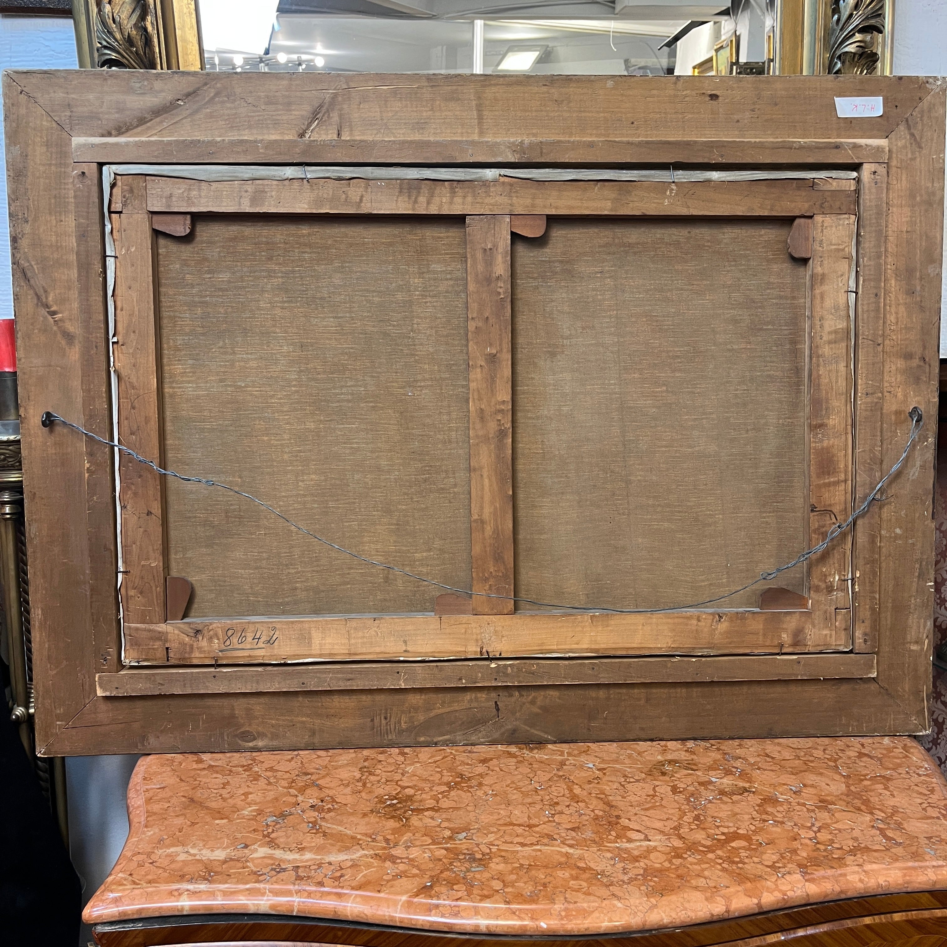 Dimensiones: Marco alto: 92 cm, ancho: 126cm, profundidad: 6cm. Obra alto: 64.5 ancho: 98.5