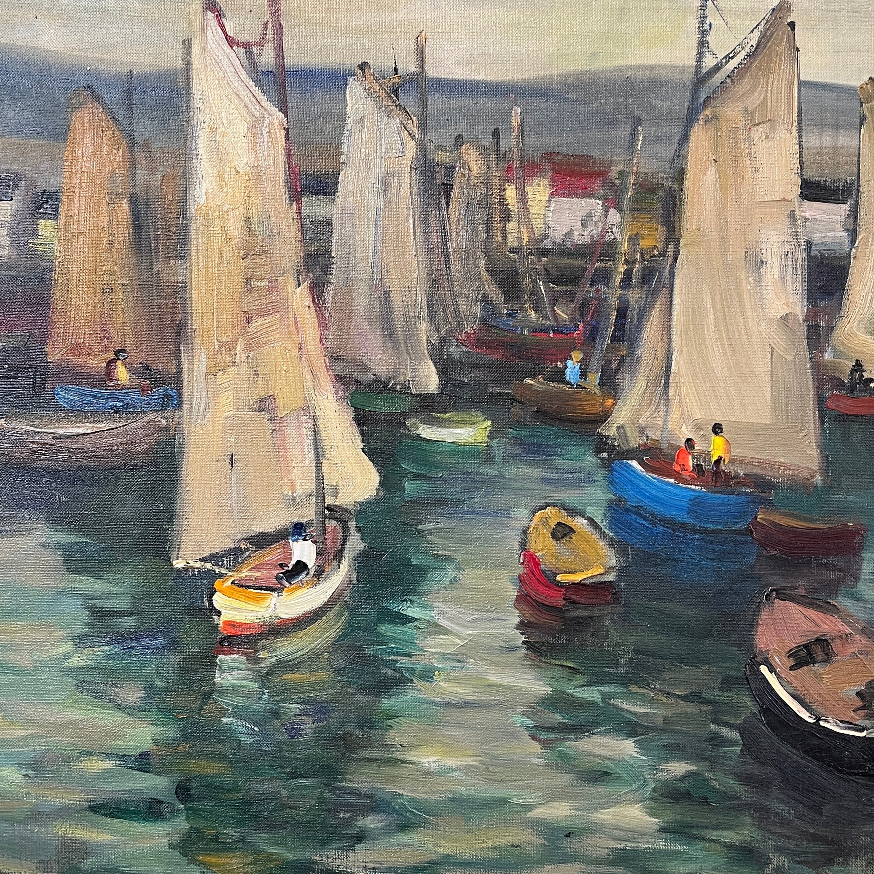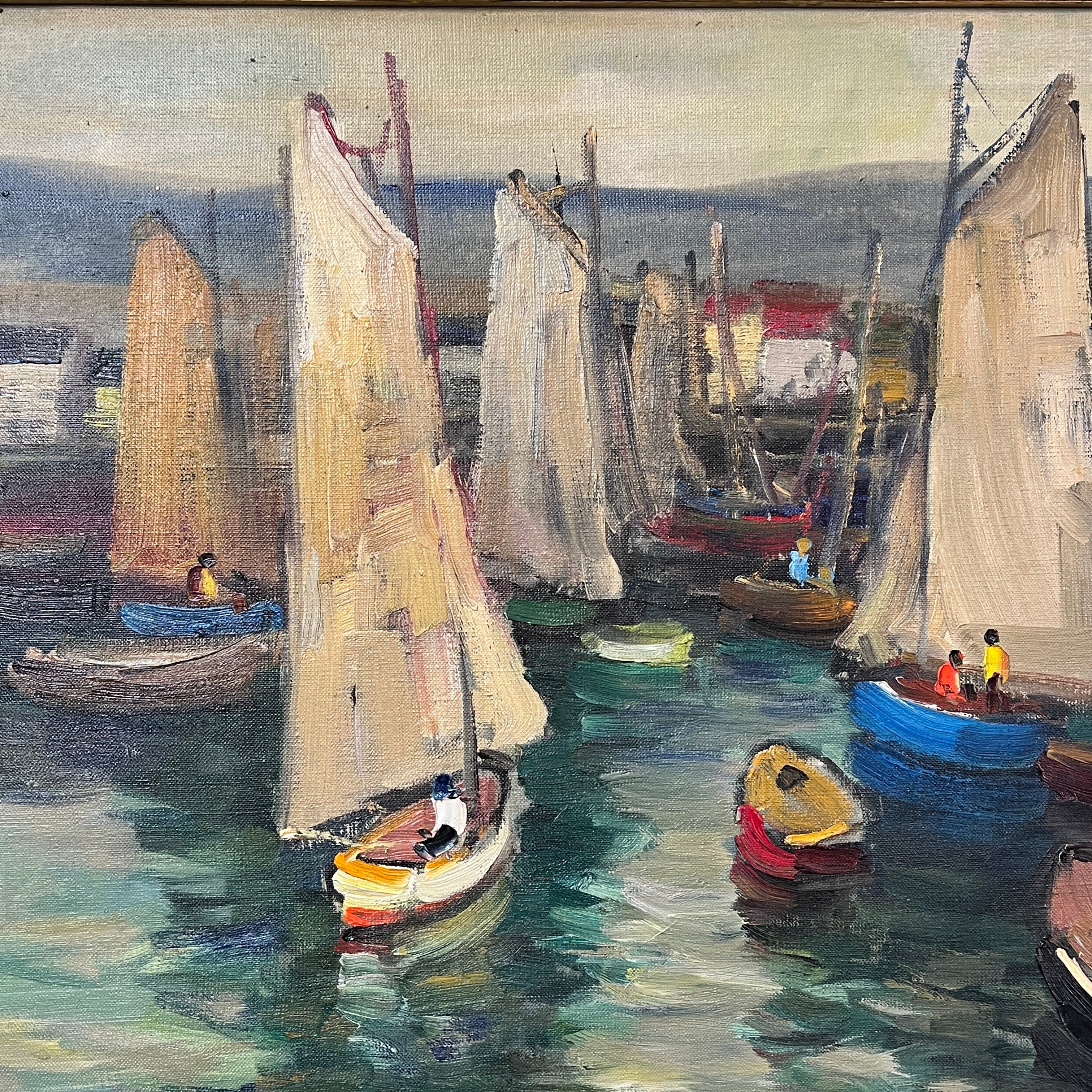 Arturo Pacheco Altamirano - Óleo sobre tela ‘Veleros en el muelle’