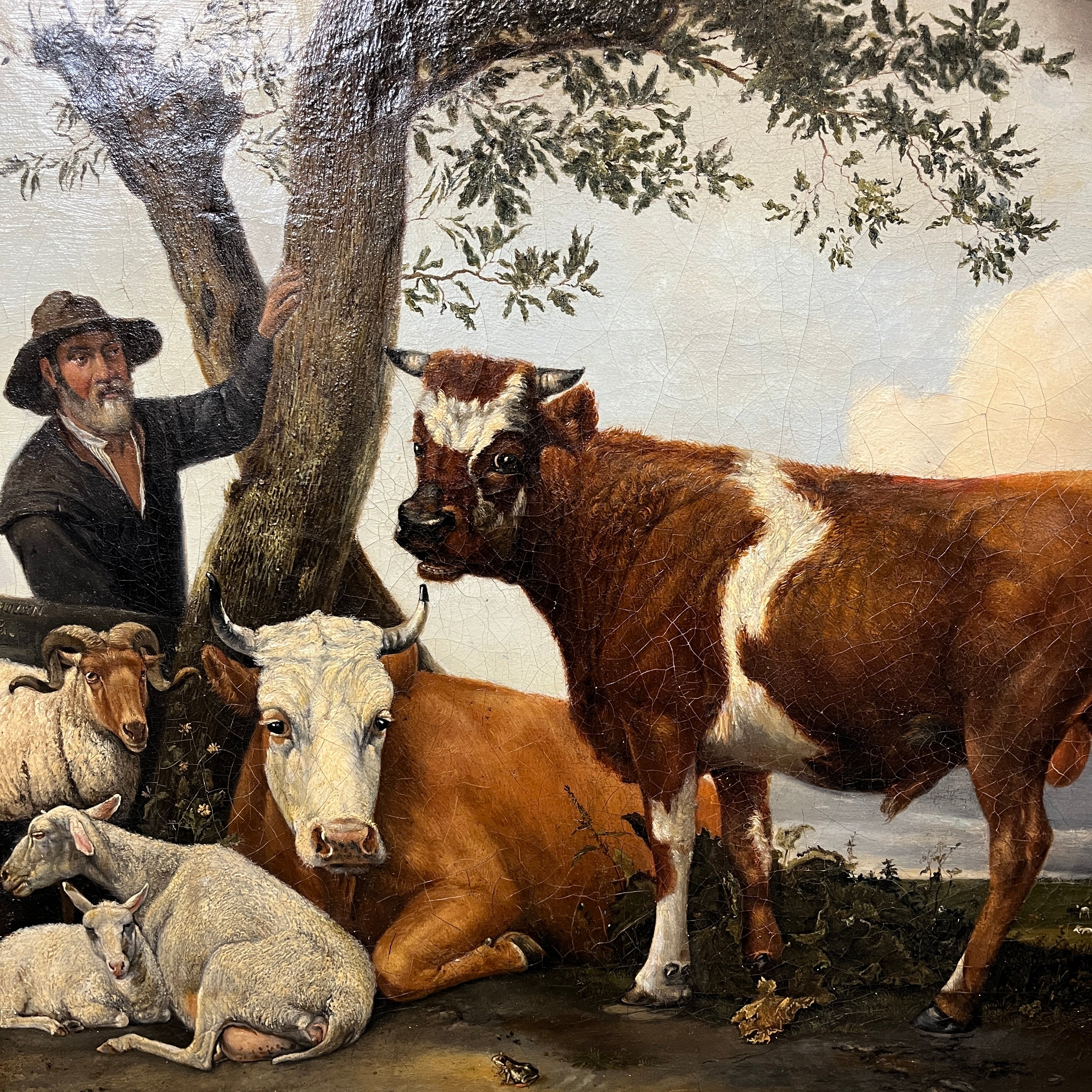 Paulus Potter - Óleo sobre tela ‘Hombre y su ganado’ (1625)