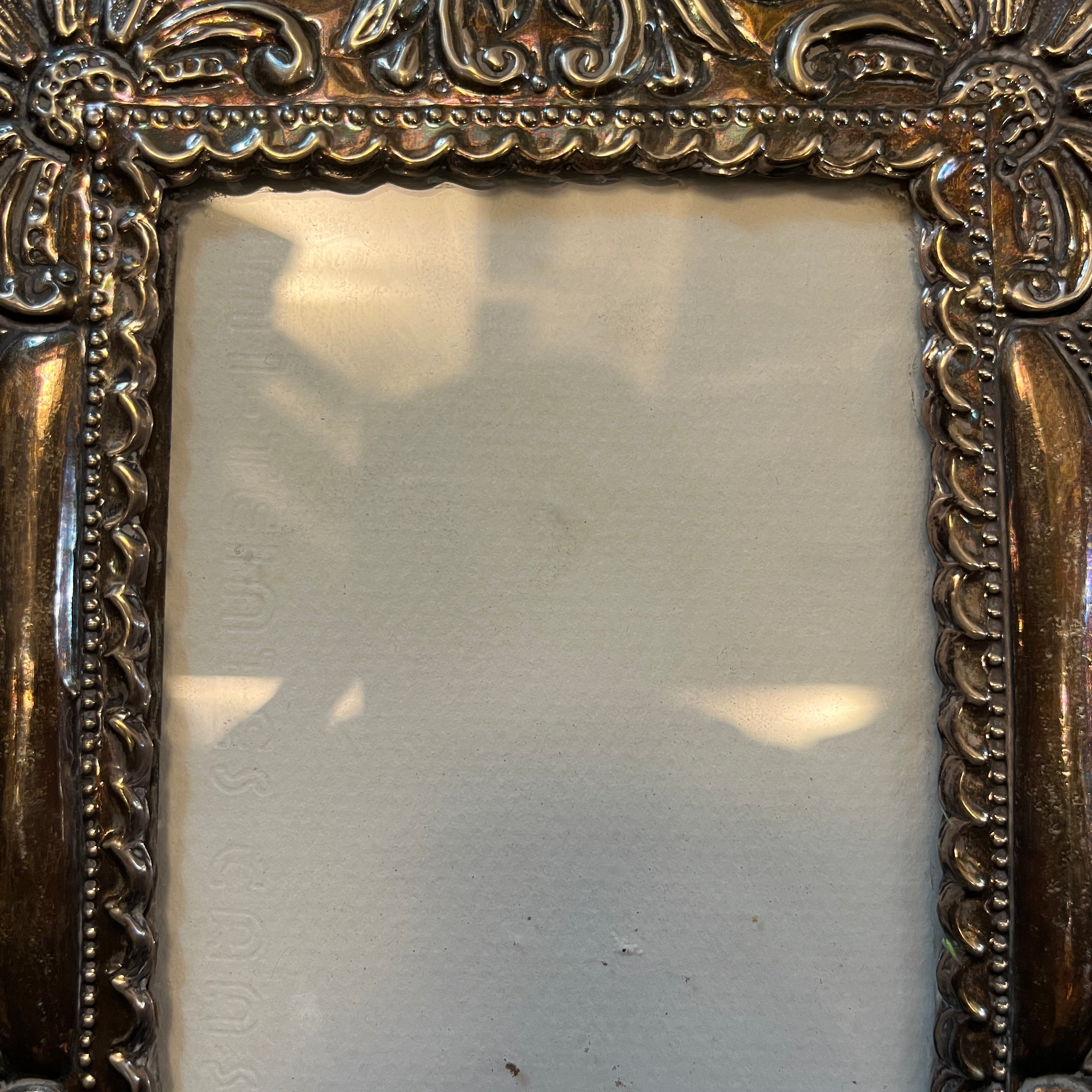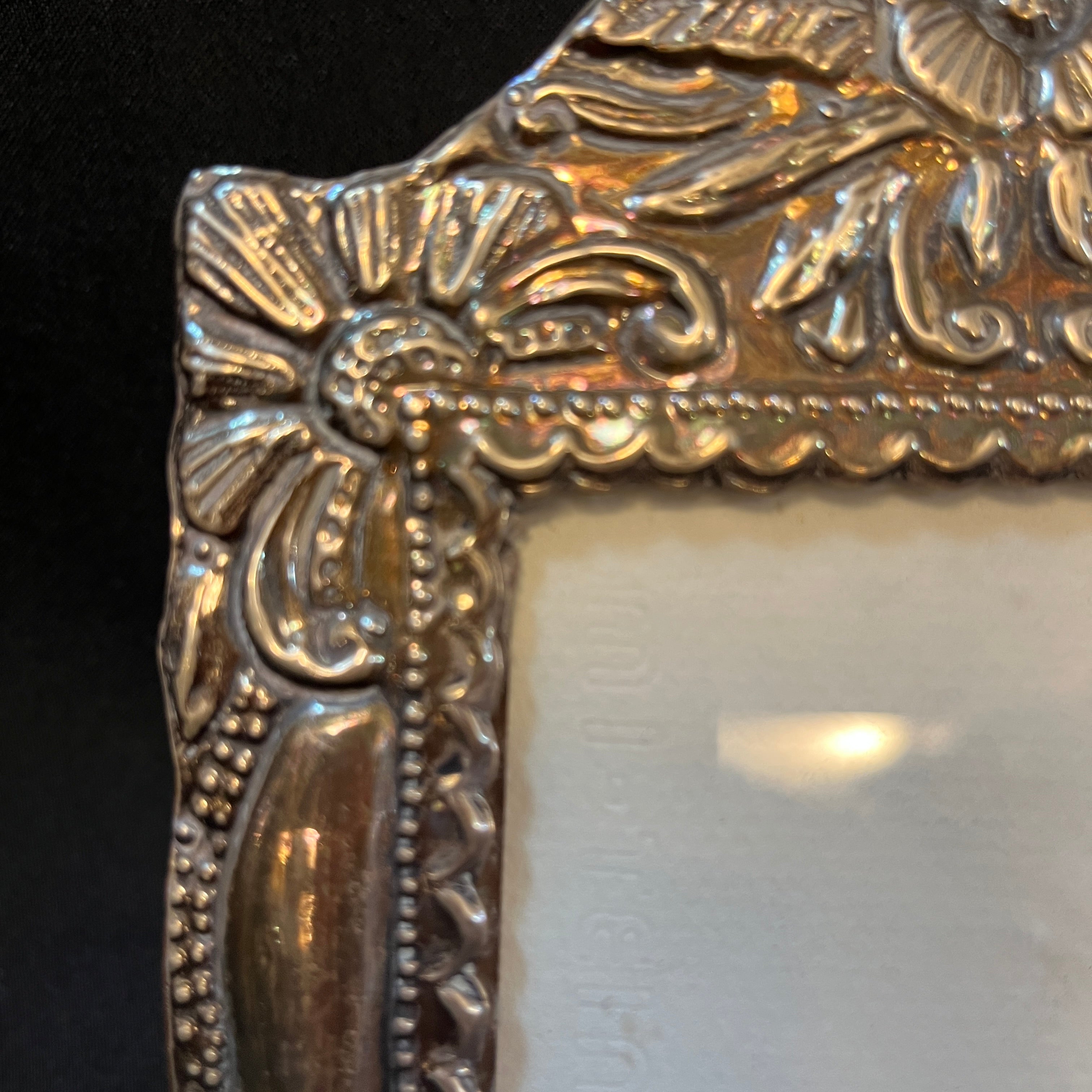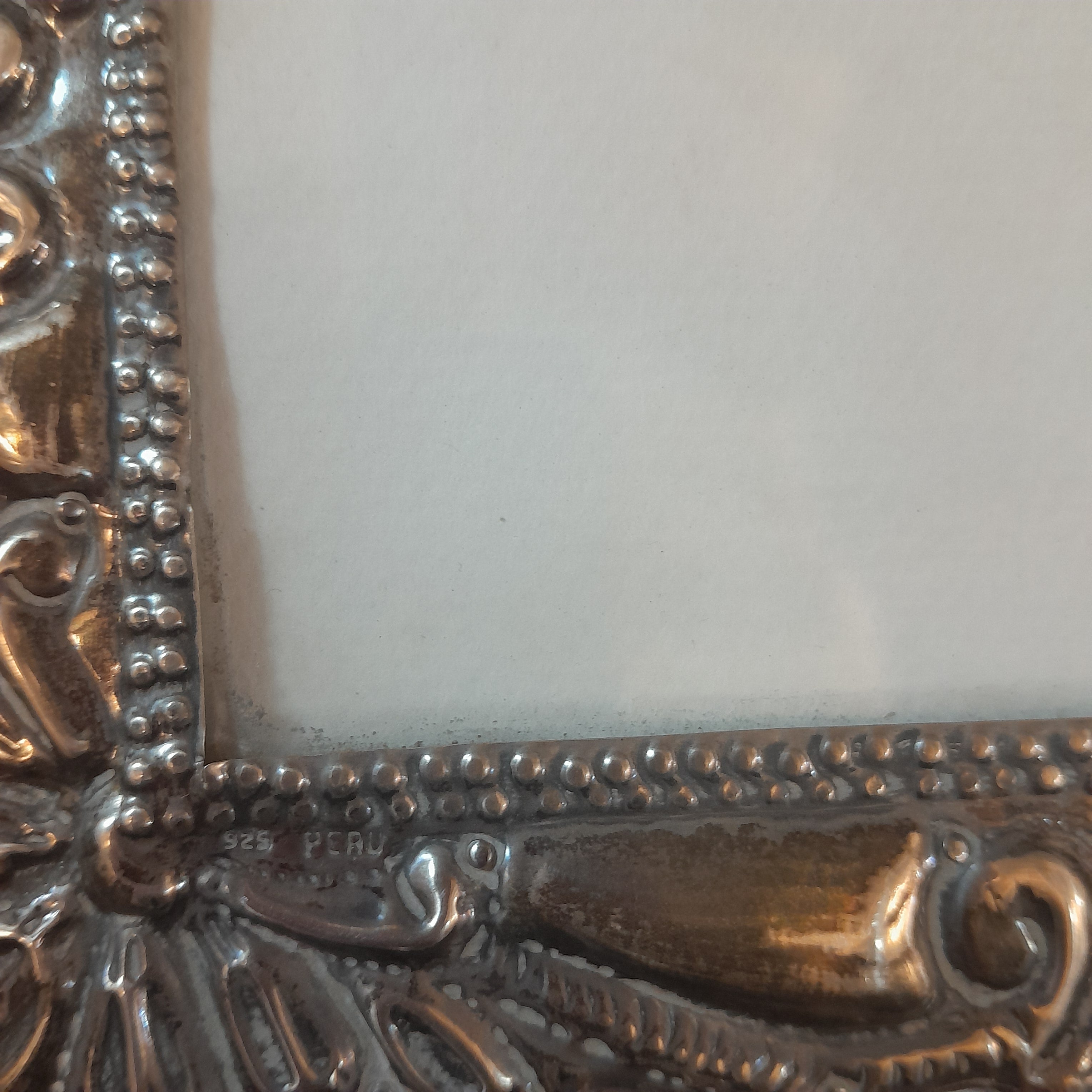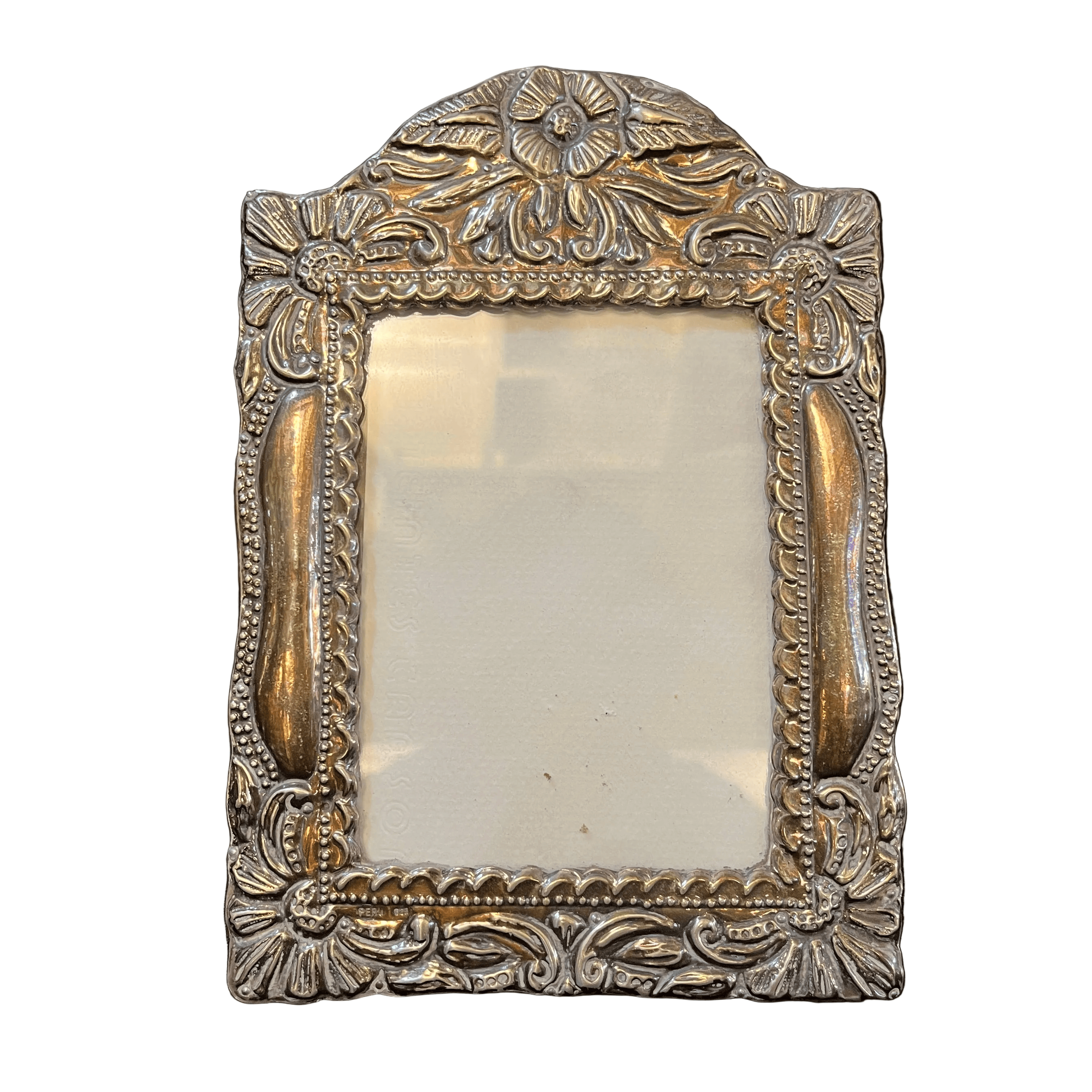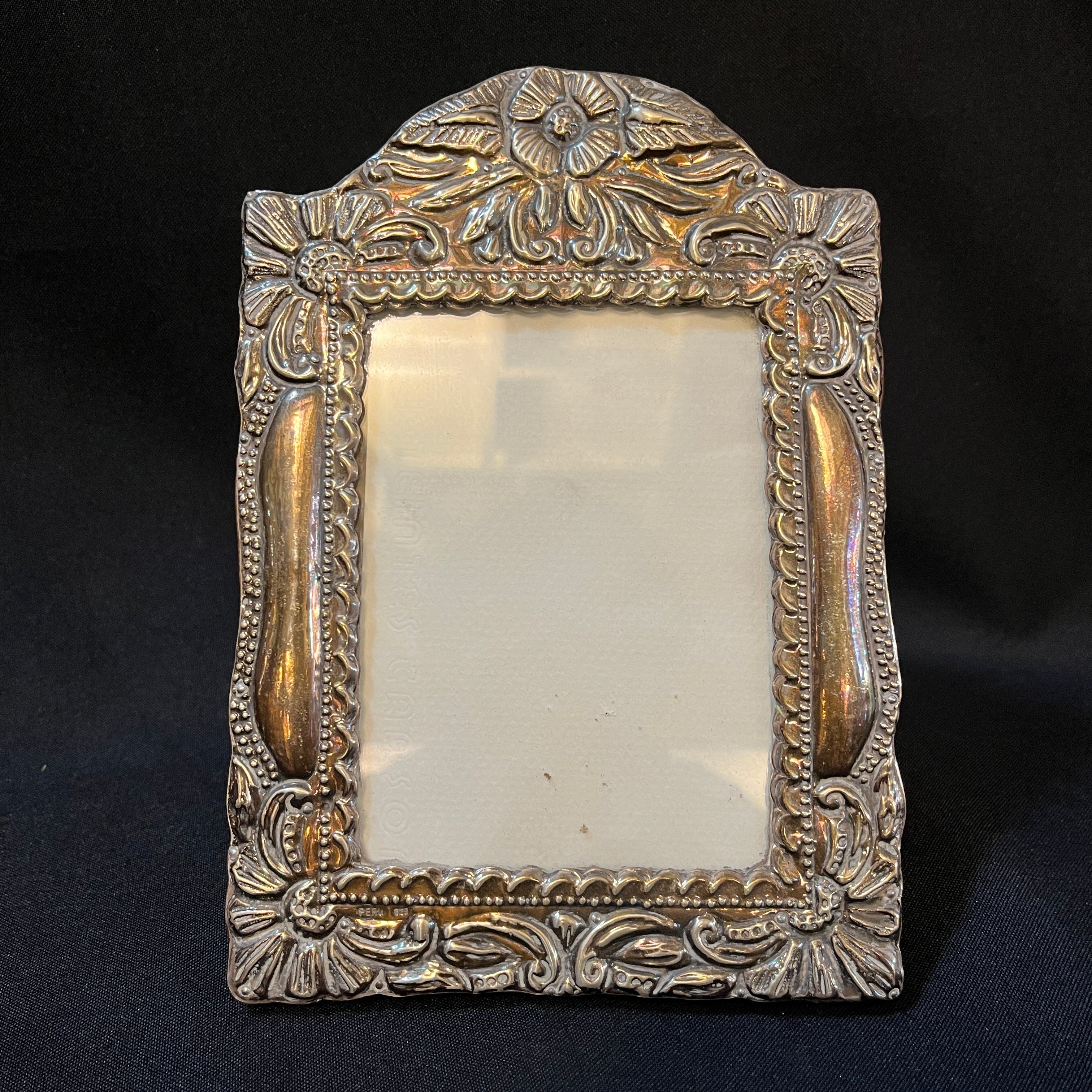 Portarretrato de madera con lámina de plata peruana detalles florales