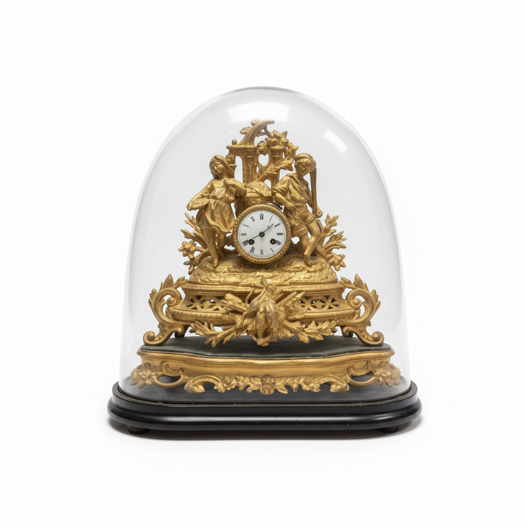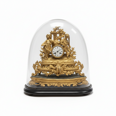 Reloj en régule francés de bronce dorado con cúpula de cristal fines s.XIX