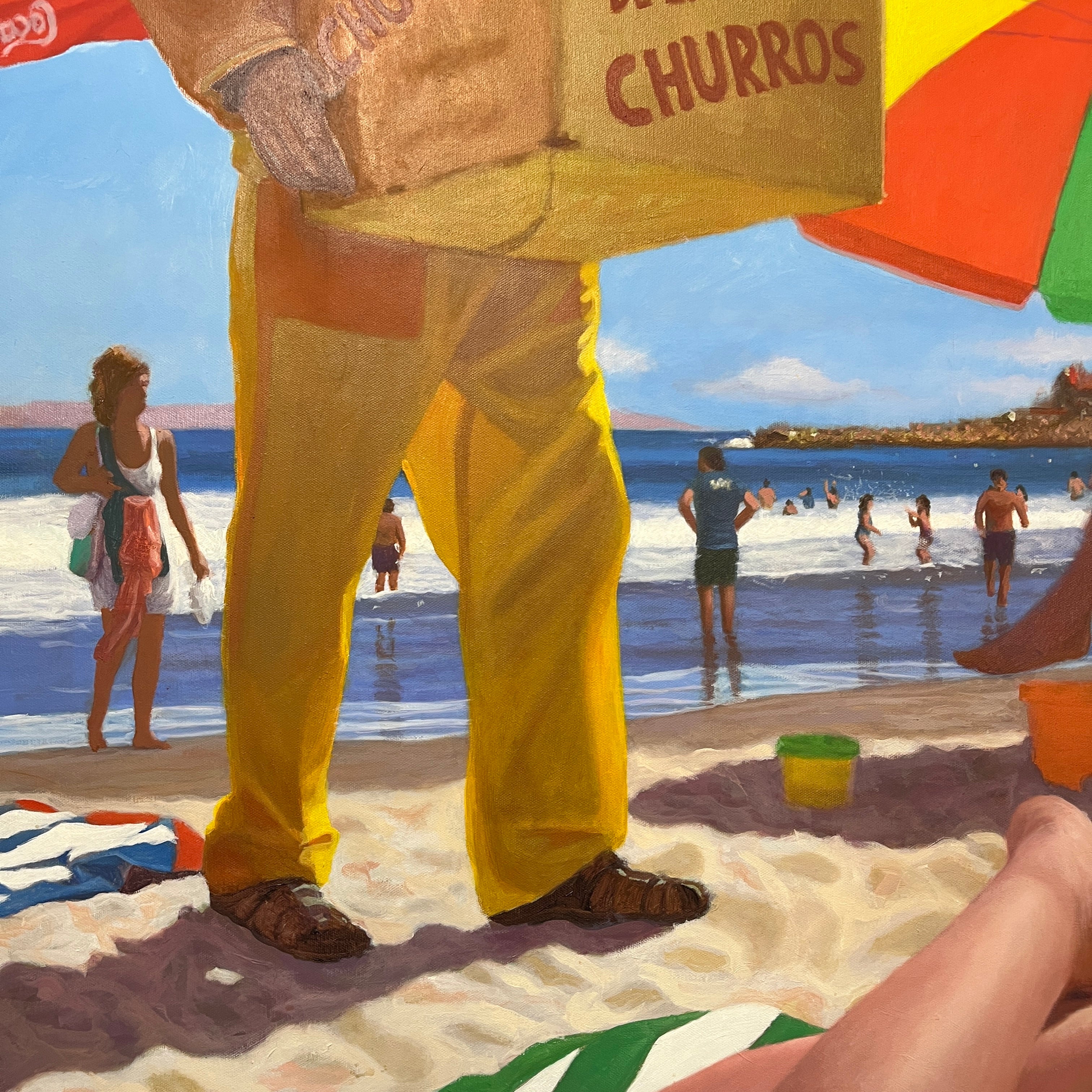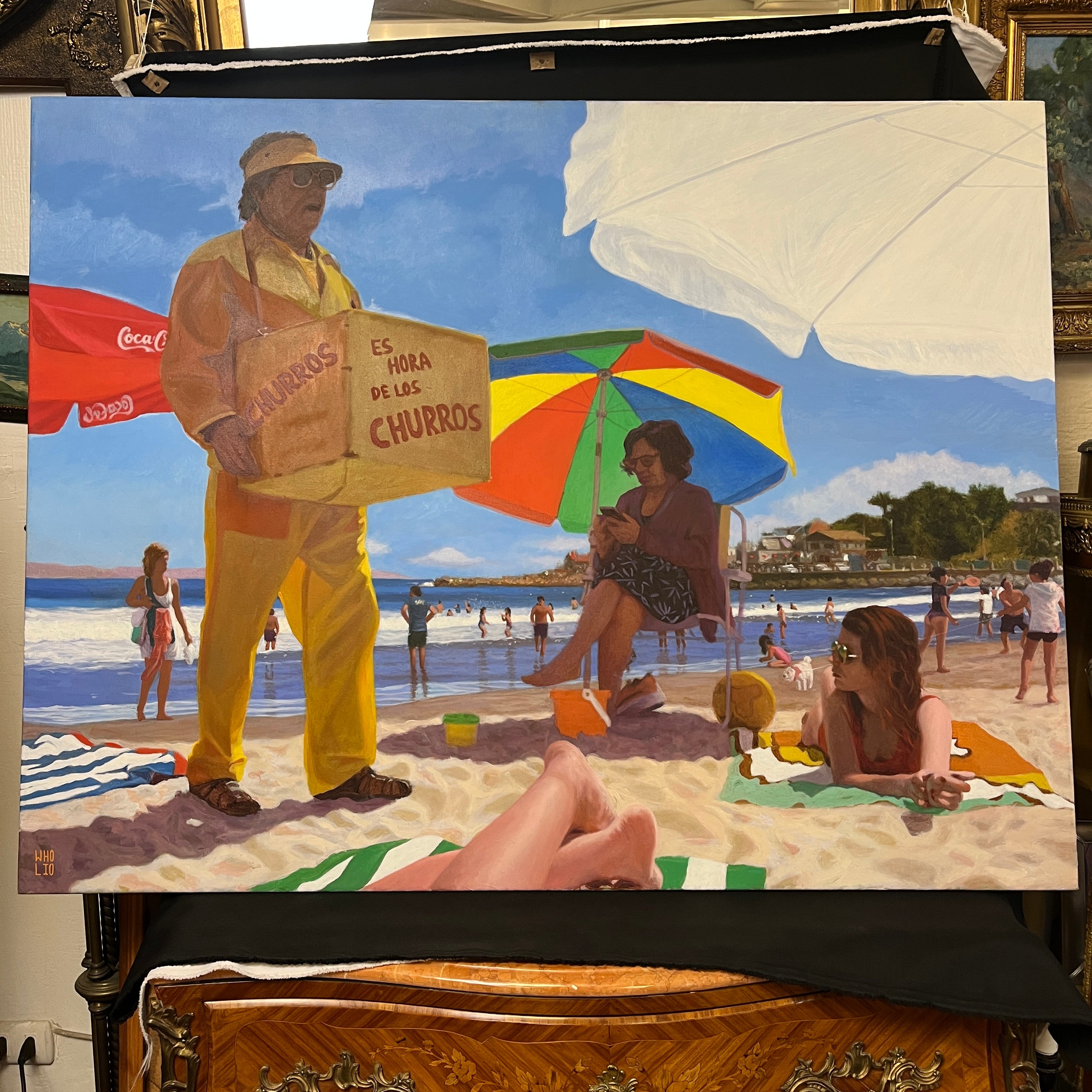 Pintura hiperrealista de gran formato, del artista chileno Rodrigo Labra Wholio. A simple vista puede parecer una impresión fotográfica, sin embargo al acercarse se puede apreciar el minucioso trabajo del pintor. La obra refleja una tradicional imagen de las playas chilenas con sus vendedores ambulantes y veraneantes disfrutando de la playa.