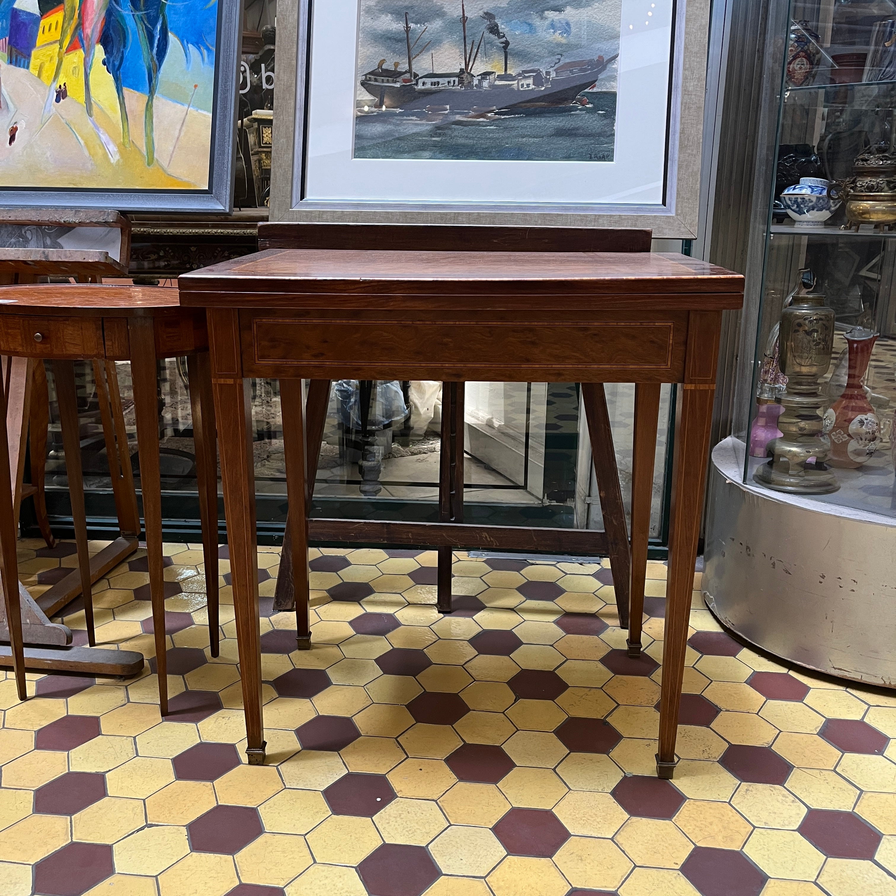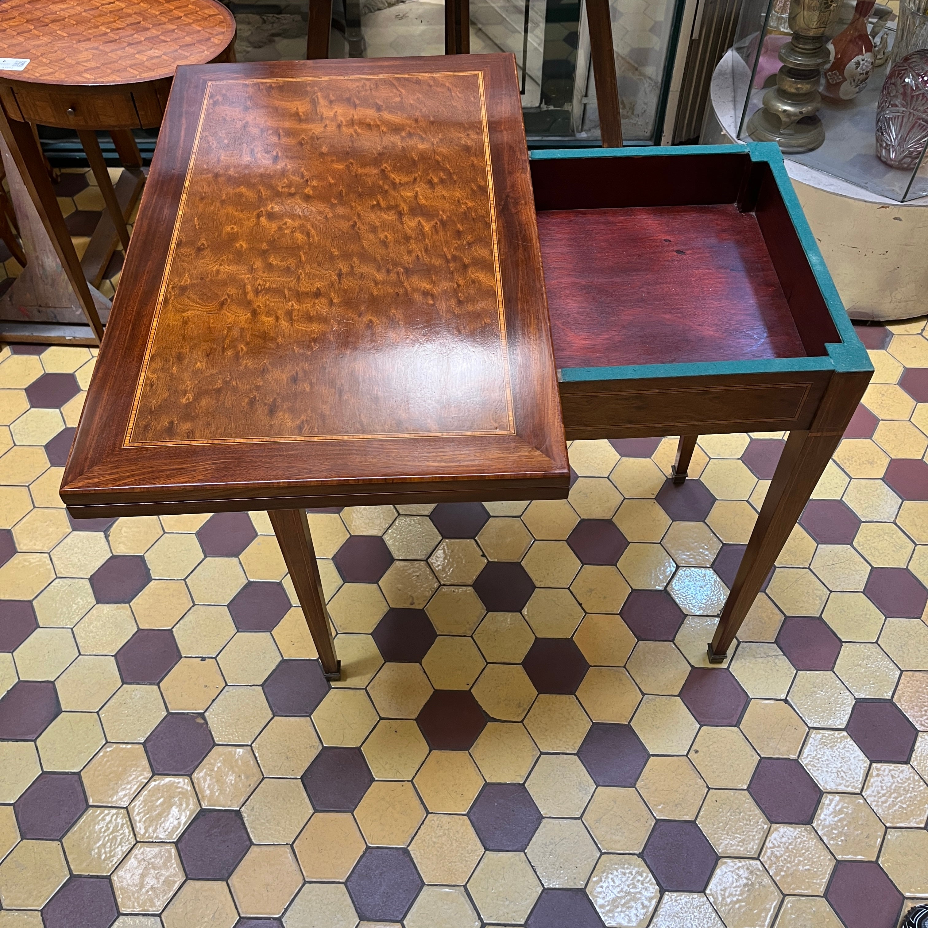 Mesa de juego francesa estilo Luis XVI desplegable paño verde