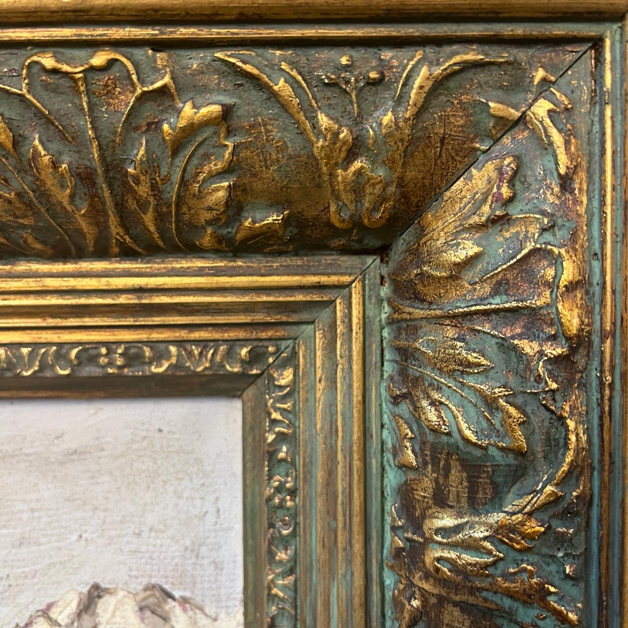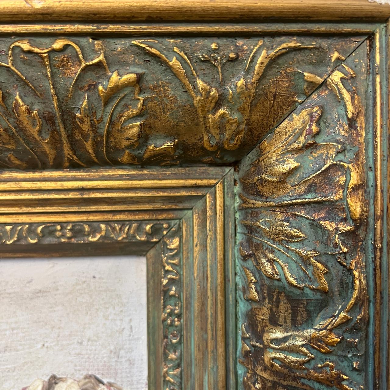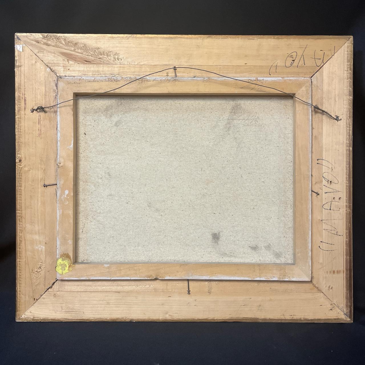 Dimensiones: Marco alto: 58 cm, ancho 68 cm, profundidad 7cm. Obra alto: 38 cm, ancho: 48 cm.