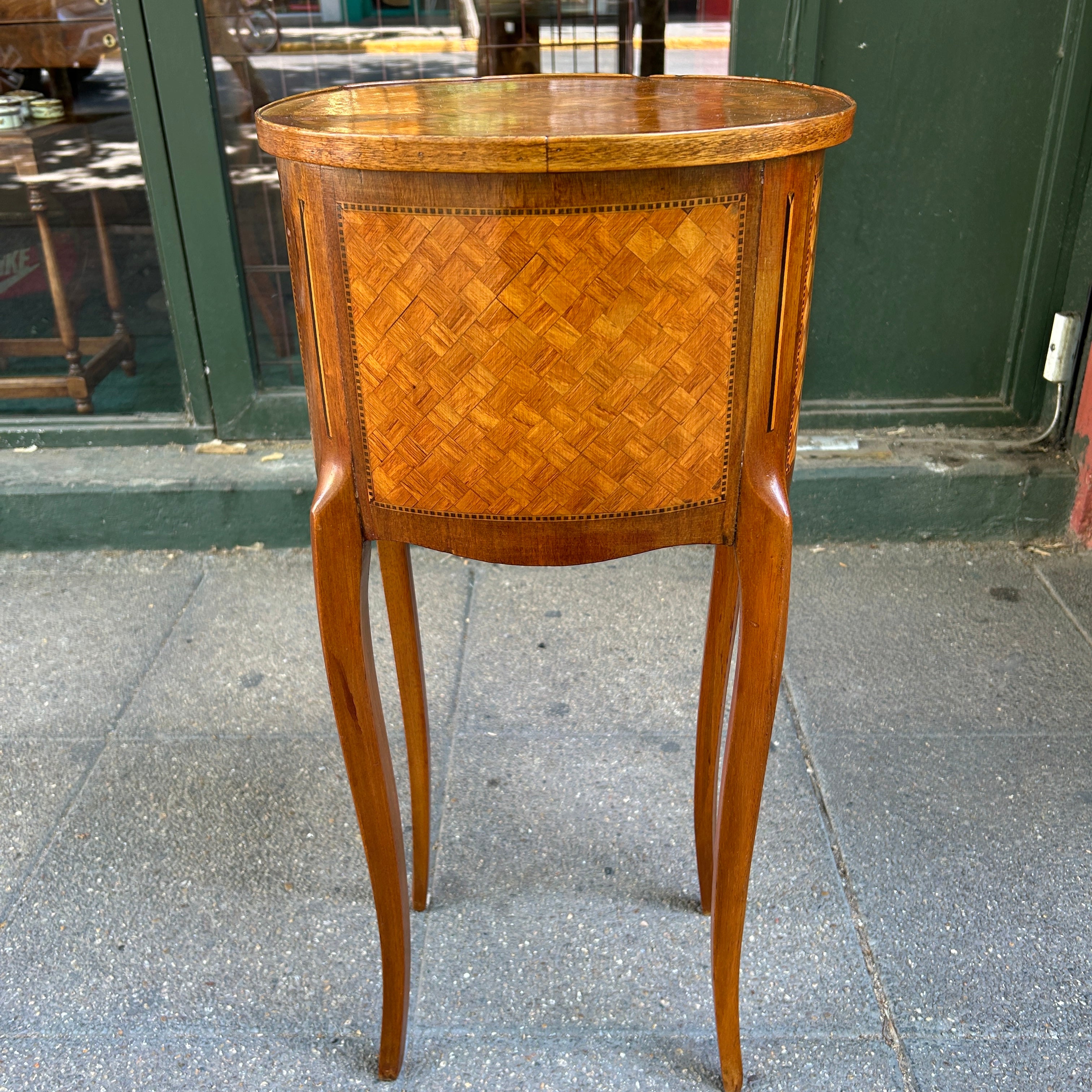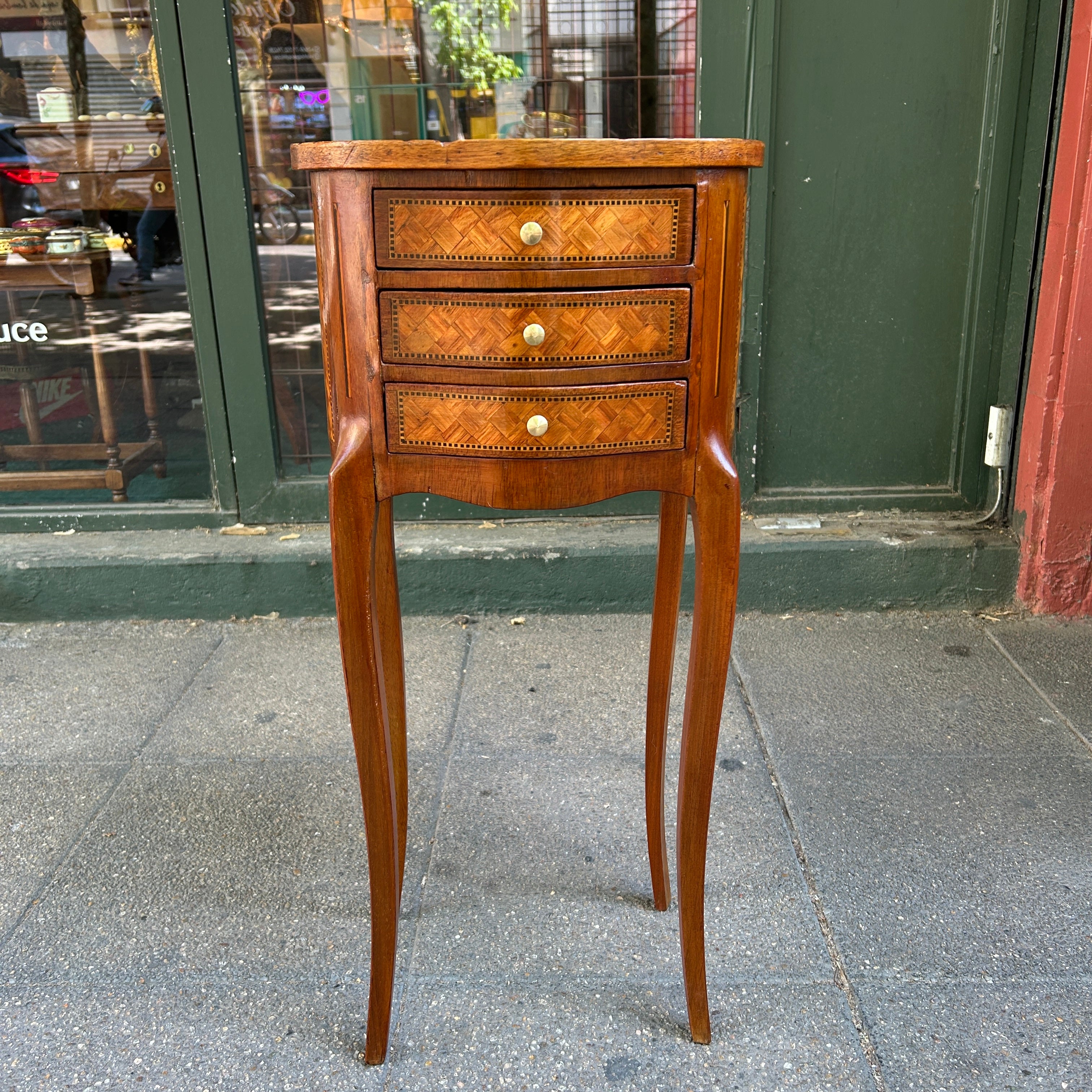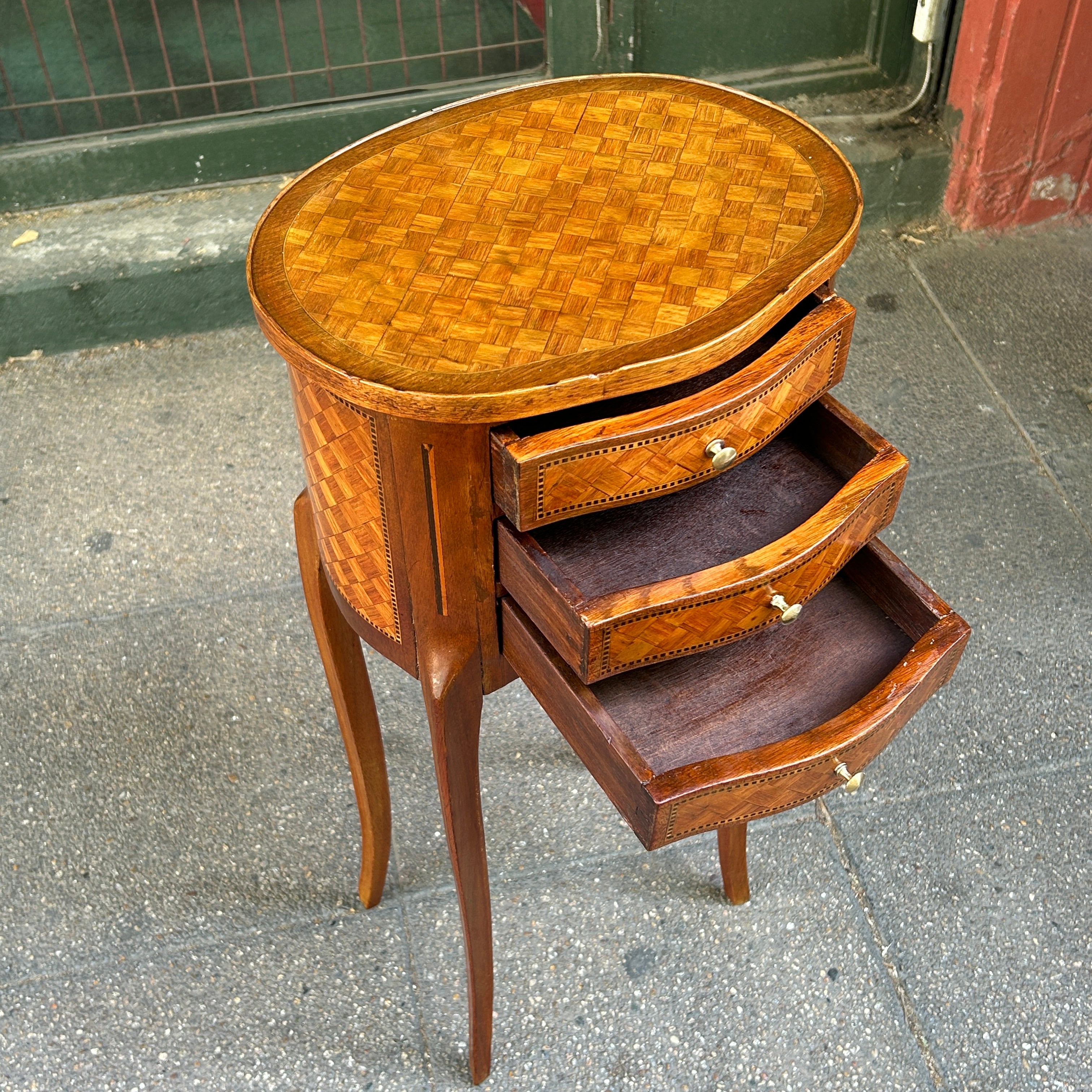 Velador francés estilo Transición parquetería cabriolé y tres cajones